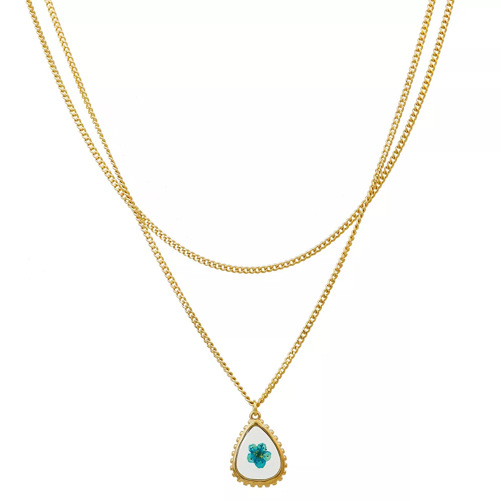 Bring a little bit of the outside into your jewelry collection with this gold tone Bella Uno pressed flower layered pendant necklace.