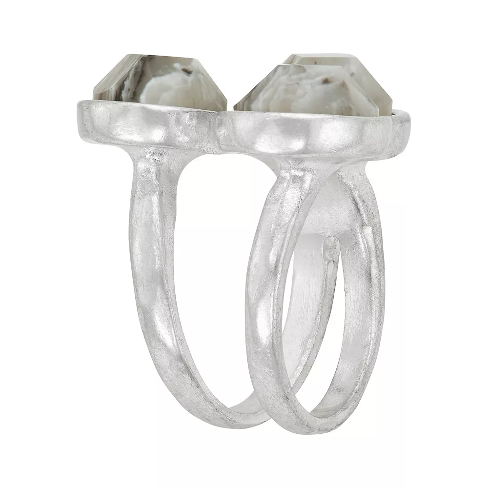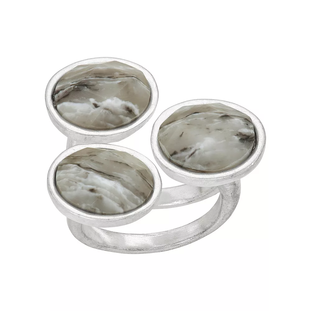 Update your ring collection with this enchanting Bella Uno ring, featuring three grey agate stones.