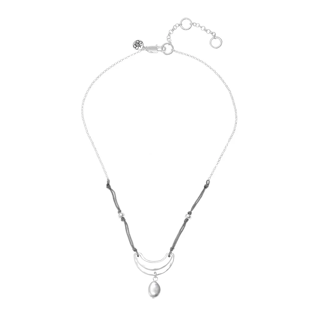 This adorable Bella Uno silver tone half-circle and metal bead pendant necklace showcases a unique look that you’re sure to love showing off!