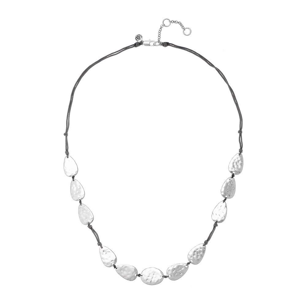 The simple and stylish look of this Bella Uno silver tone metal teardrop discs necklace is sure to become a favorite in your jewelry collection.