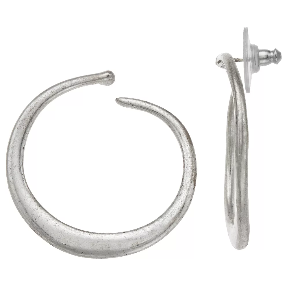Bella Uno Silver Tone Post Back Open Hoop Earrings