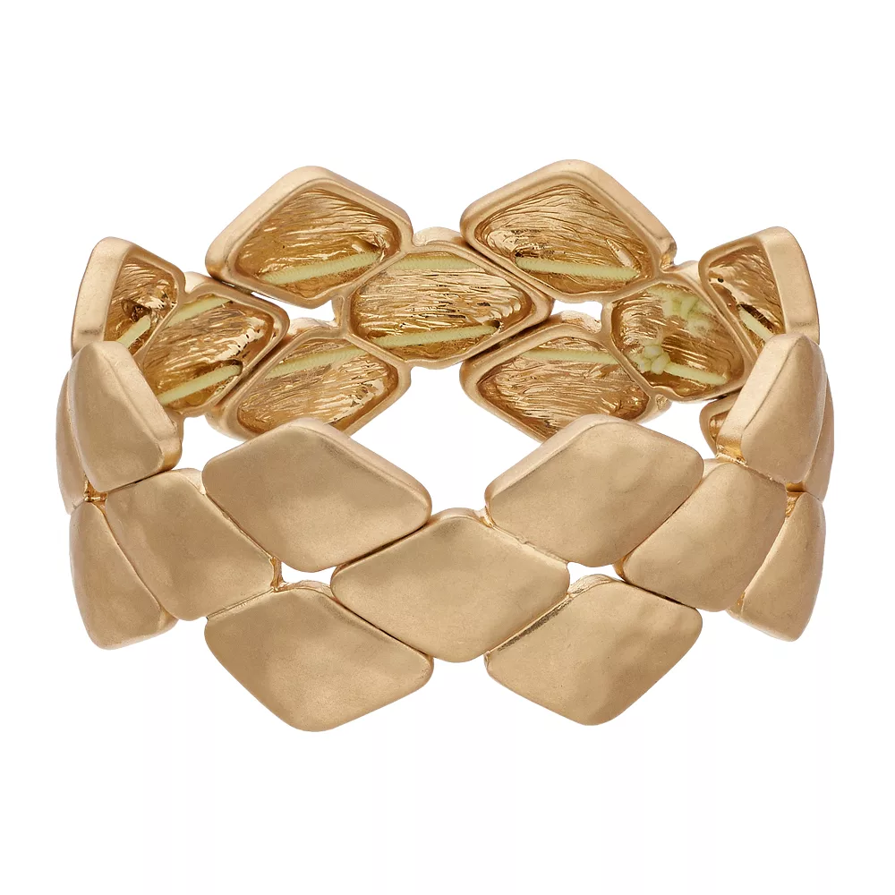 - Diamond-shaped plates on a stretchy bracelet