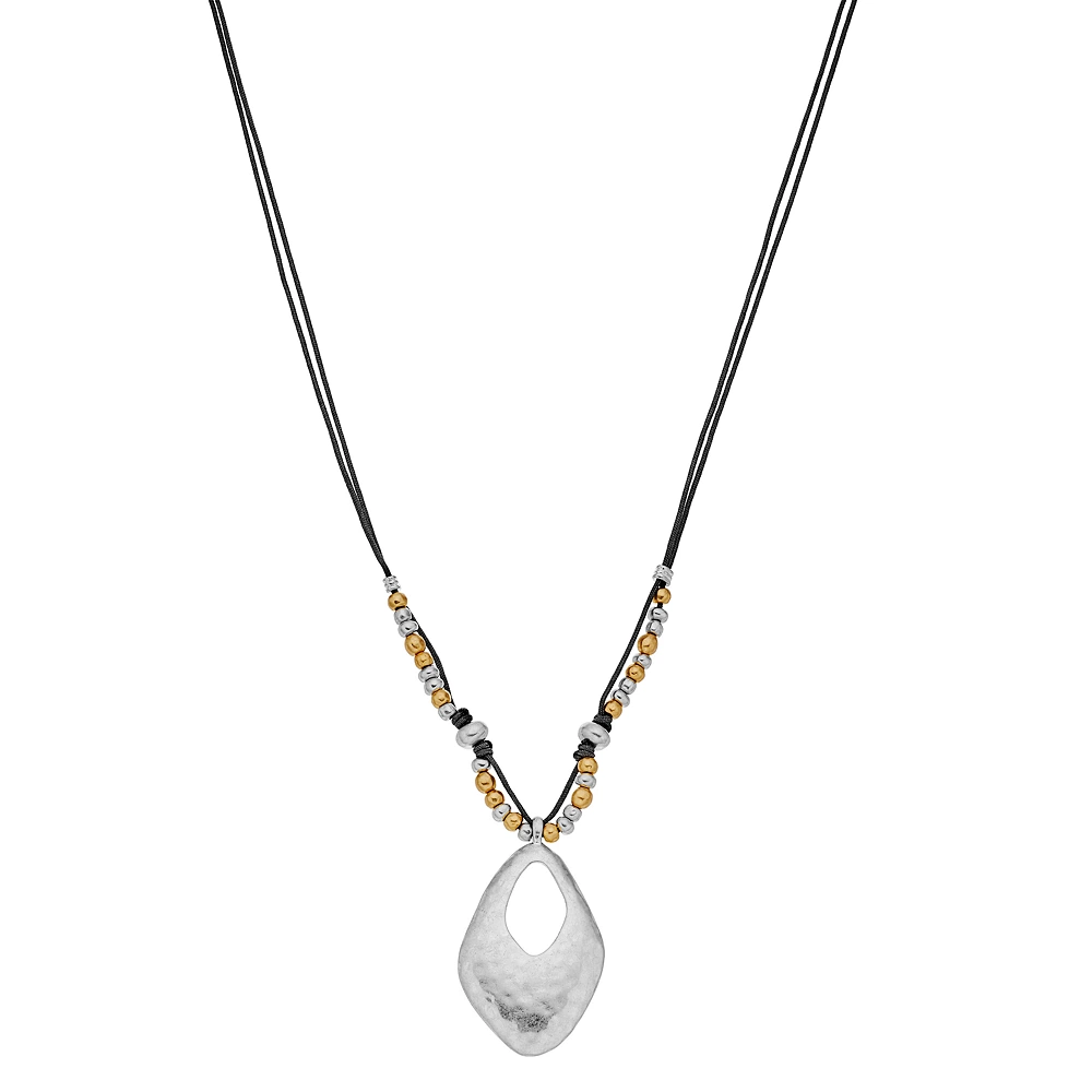 This open diamond-shaped pendant necklace by Bella Uno is two-toned so it’s sure to coordinate with all types of outfits.