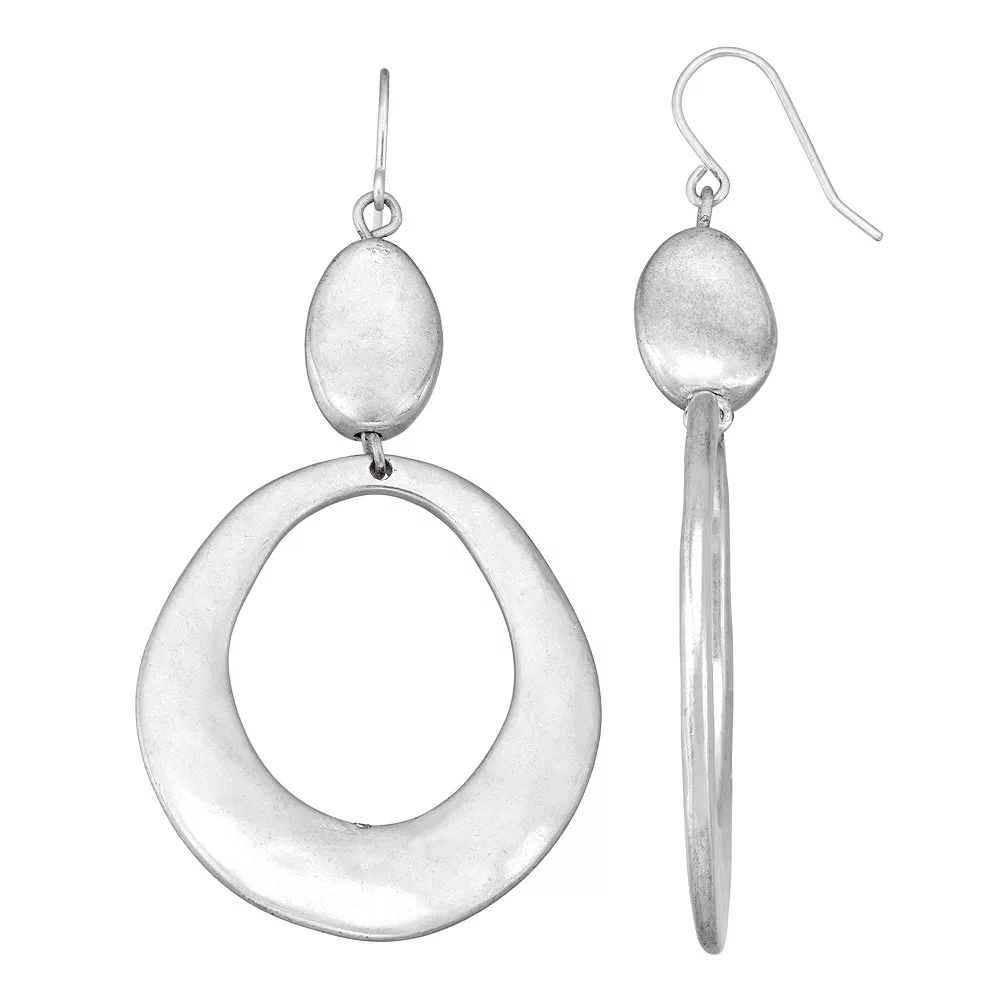 These gorgeous Bella Uno Worn Silver Open Circle Drop Earrings are a must add to your jewelry collection.