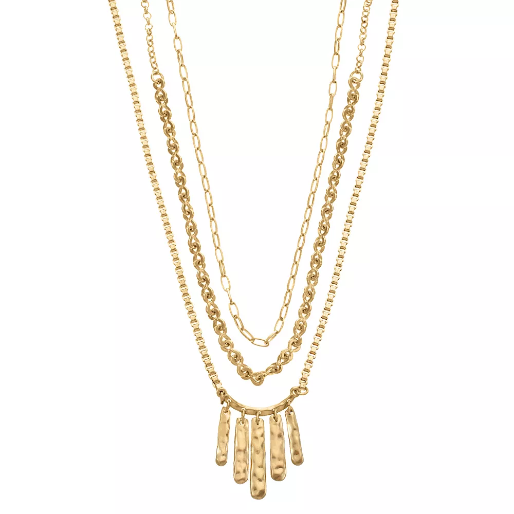 Accessorize in style with this Bella Uno Zinc Gold Tone Long Statement Layered Necklace.