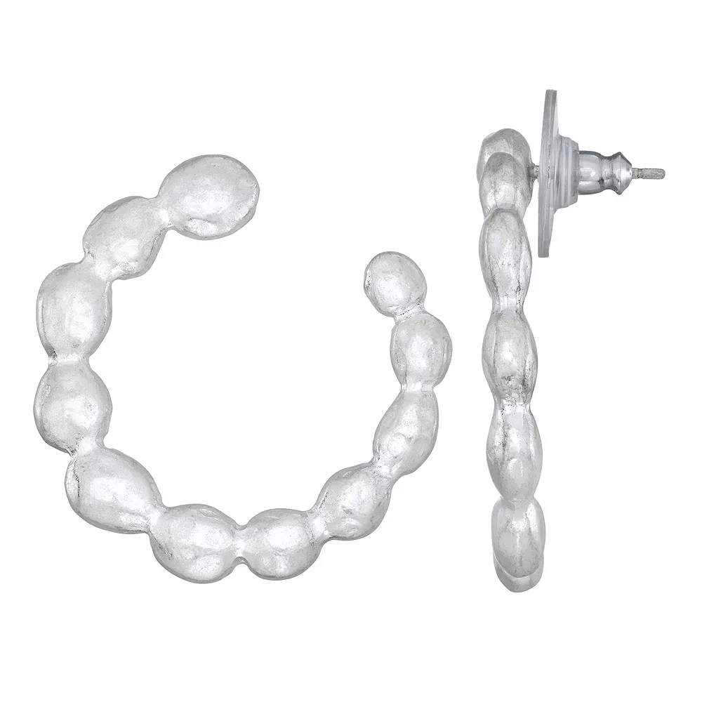 Women’s Bella Uno Worn Silver Beaded Hoop Earring